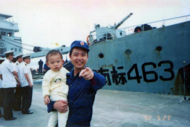 ▲ 南沙执行任务凯旋后,秦国祥与儿子