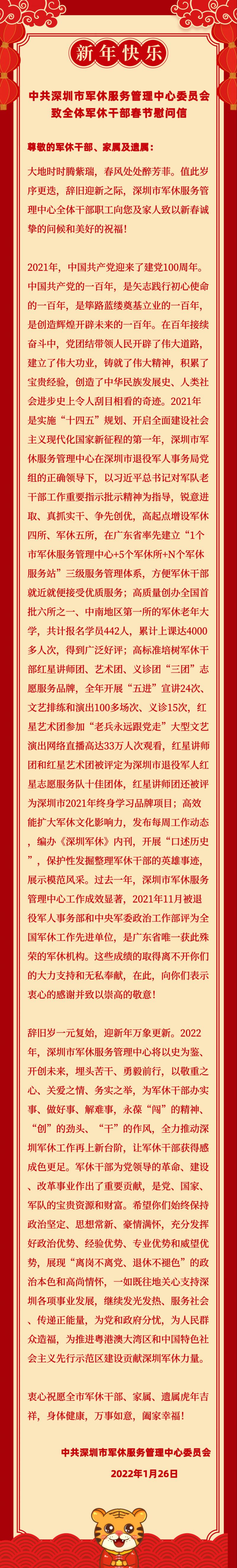下一篇:中共深圳市委 深圳市人民政府春节慰问信