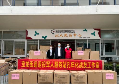 除奋战在疫情防控前线外,还有部分退役军人亦积极践行社会责任,踊跃捐赠防疫物资,作为新时代的人大代表、退役军人孔年化便是其中一个典型。在“0115”疫情首例感染奥密克戎变异病例出现在龙岗区宝龙街道龙新社区后,孔年化战友工作室向社区捐赠了N95口罩、医用口罩、防护眼罩等一批价值6万余元的防疫物资支援一线,用爱心温暖奋战防疫前线工作人员。