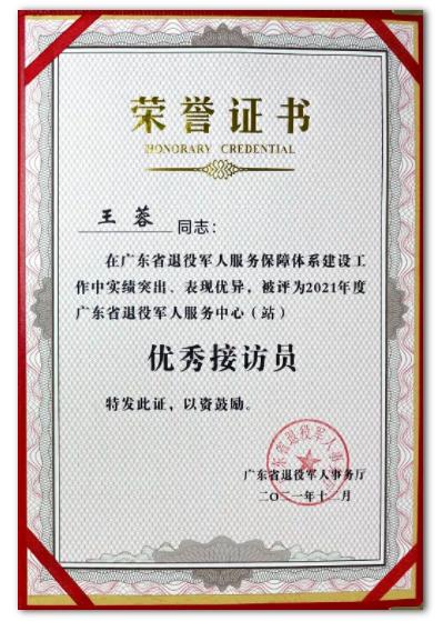 王蓉,2012年6月加入中国共产党,2018年8月起在盐田街道从事退役军人服务保障工作至今;2019年作为深圳市代表队成员之一参加广东省退役军人事务系统法律法规知识竞赛,团队荣获第一名。