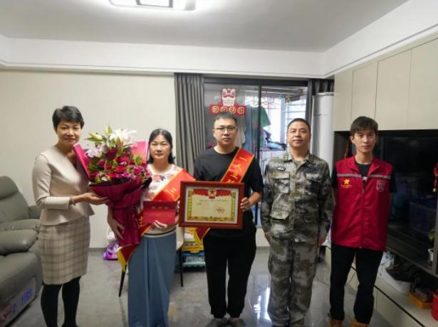 荣耀入户显功勋,拥军优属情谊真。4月7日,深圳市罗湖区退役军人事务局联合相关部门组成送喜报小组,为辖区荣立三等功现役军人黄景祥家属送喜报。区退役军人事务局副局长陈艳,区人武部副部长刘奇,区退役军人服务中心、黄贝街道退役军人服务站负责同志参加活动。