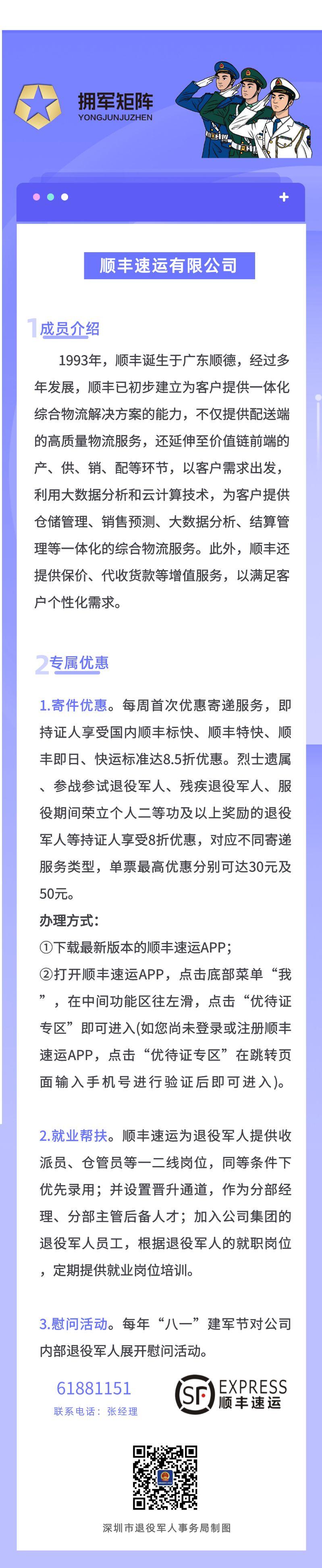 此外,部分优惠项目已加载至电子优待证“优待专区”,服务对象只需登录“鹏城老兵APP”即可享受线上线下融合的优先优惠服务。