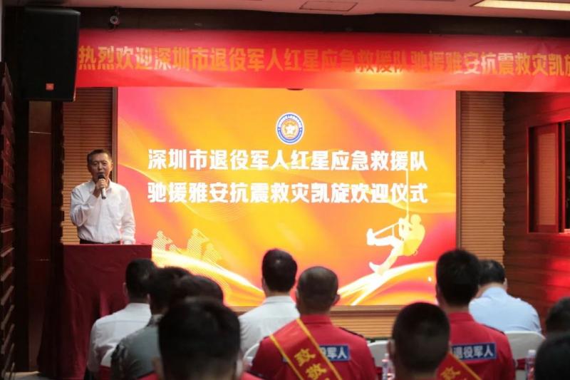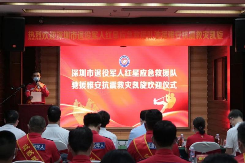 9月14日下午,深圳市在福田区葵花酒店公寓红星堡垒户举办市退役军人红星应急救援队驰援雅安抗震救灾凯旋欢迎仪式活动。深圳市退役军人事务局党组书记、局长张悦华出席活动并讲话,党组成员、副局长王文全出席,市退役军人服务中心、市基金会发展促进会、市关爱行动公益基金、市龙越慈善基金会相关负责同志以及应急救援队抗震救灾队员等参加欢迎仪式。