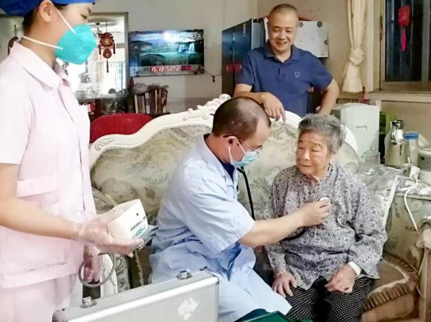 在龙岗街道龙西社区,医护人员给今年已88岁高龄的杨水连进行血糖、血常规、血压、肝功能等较为全面的健康检查,发现老人今天血糖明显偏高,并详细了解过往检查情况,询问饮食习惯、活动规律,建议老人尽快到医院对血糖和肾功能进行检查,根据复查结果作进一步治疗。