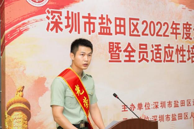退役士兵刘志炜代表发言,他表示非常感谢盐田区委区政府对退役士兵的关心和关爱!他们将一如既往保持和发扬军队的好习惯好传统好作风,努力学习提升自身技能及适应社会本领,为盐田的建设添砖加瓦。