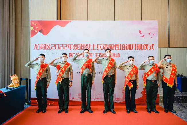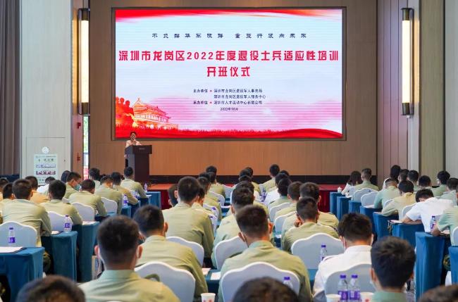 为进一步增强退役士兵光荣返乡自豪感、荣誉感和归属感,提高就业创业能力,规划职业生涯,帮助退役士兵尽快调整心态、转换角色、适应新环境,10月24日,深圳市龙岗区退役军人事务局举行2022年度退役士兵适应性培训开班仪式,热情欢迎从全国各地光荣退役返乡的退役士兵。