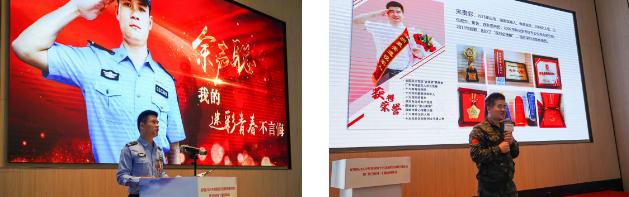 龙岗区退役军人宣讲团为退役士兵带来退役返乡第一课——“勇当先锋”主题宣讲会。从军八年、荣获多次功勋的特种兵战士余声聪再现了其2010年参加反恐军事演习时的惊险情景,让人感叹特种兵的牺牲奉献精神。退役军人创业先锋朱贵彩结合自己设计创造党建IP“龙一第”的经历,勉励现场的退役士兵们坚定信念、拒绝躺平、勇当先锋,在人生的新赛道上创造新的价值。