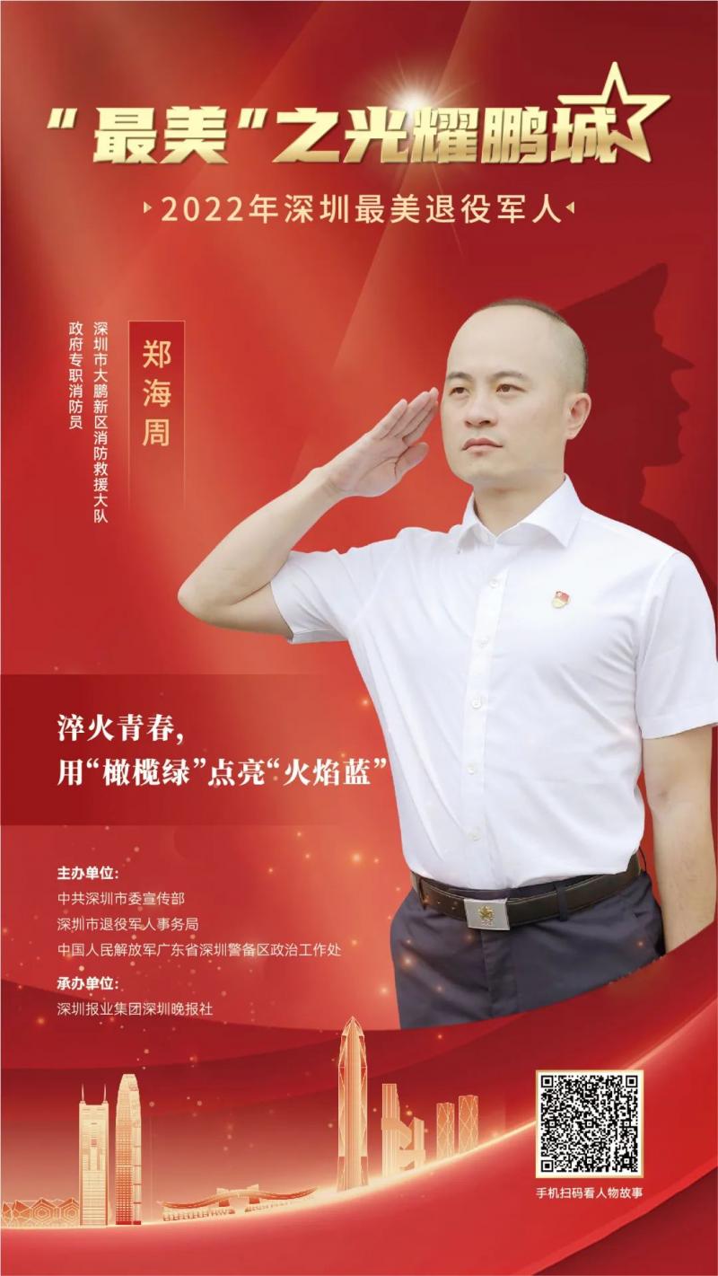 11月8日,国家应急管理部发布关于表彰第六届全国119消防先进集体和先进个人的决定。其中来自大鹏新区的专职消防员、退役军人——郑海周荣获“第六届全国119消防先进个人”称号。