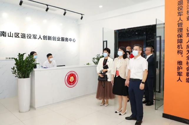 近日,深圳市南山区人大常委会副主任姜红率区人大代表到区退役军人创新创业中心,督办调研区政府2022年重点民生实事项目工作情况。南山区退役军人事务局局长薛声波、二级调研员李伏云、广东启迪科技发展投资集团有限公司副总裁茹祥安等同志参加。