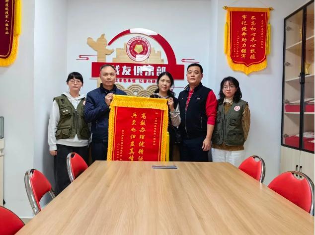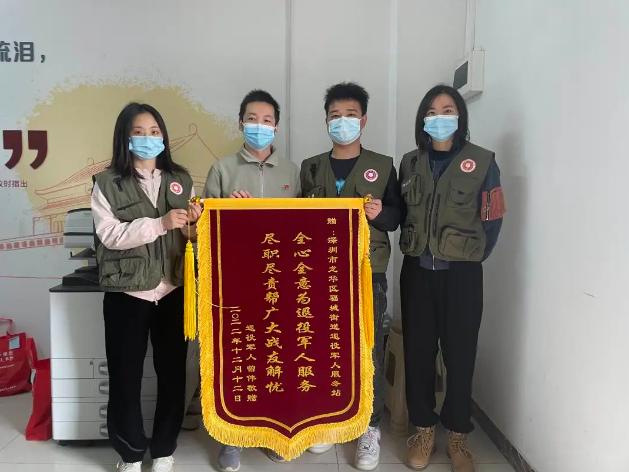 12月12日上午,退役军人曾伟为龙华区福城街道退役军人服务站送来一面印有“全心全意为退役军人服务 尽职尽责帮广大战友解忧”字样的锦旗,表达对服务站多方沟通,耐心解答,为他解决办理优待证难题的感激之情。