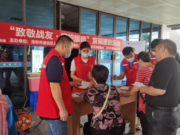 “致敬战友·呵护眼睛”复明援助项目是深圳市退役军人事务局发起,依托福利彩票公益金,联合深圳爱尔眼科医院、深圳深东爱尔眼科医院、深圳华厦眼科医院等医疗机构,为患有白内障或严重眼疾的驻深部队现役军人直系亲属、深圳户籍退役军人及其直系亲属和其他优抚对象提供眼疾治疗手术费用援助,并深入全市社区和驻深部队开展公益眼健康检查和知识科普活动。自2018年启动以来,项目共开展9批次评审会,累计通过531名服务对象资料申请并安排眼科治疗手术,累计拨付援助金近70万元。