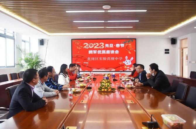 为深入贯彻党的二十大精神,大力弘扬关心国防,尊崇军人的良好社会风尚,进一步体现学校对军人、退役军人、军属和其他优抚对象的关心关爱,更加激发广大师生的爱国拥军热情,持续营造拥军优属浓厚氛围。2月3日上午,深圳市龙岗区实验高级中学(平湖中学)召开拥军优属座谈会,特邀那永刚、陈利军、张俊等退役军人及孙艳、何沛榆、王群利、陈菊霞、姚自蹊等优抚军属代表,校领导毛展煜、高健、胡鹏、李青参加座谈。