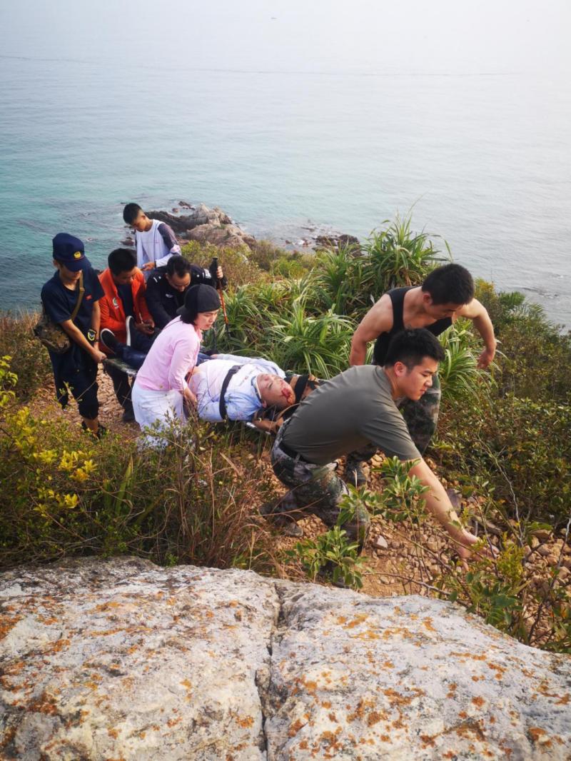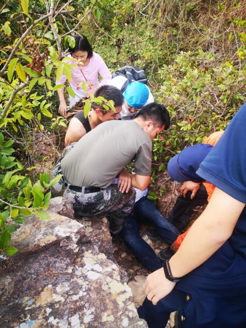 近日,大鹏新区南澳办事处接到应急救援通知:“东涌社区登山口往山顶方向有1名群众不慎摔伤,被困山顶,请赶往救援!”休假中的退役军人谢慰衡、温健辉得知单位人手不足的消息后,第一时间放弃休息,参与消防、派出所、医院联合组成的救援队赶赴事发现场参与救援。