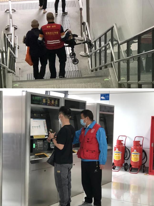 据了解,龙华区大浪街道退役军人红星志愿服务队,每周一至周五早高峰8点到10点在地铁站内提供志愿服务,5位红星志愿者风雨无阻,为搭乘地铁的乘客提供如站内指引、搬运行李、协助购票、安全提示、秩序维持、旅游推广、市容维护等暖心服务,赢得社区居民及乘车市民的好评。