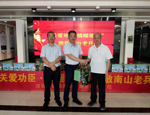 “关爱功臣·情暖端午”致敬南山老兵慰问活动以物资捐赠的方式,让南山区抗战、抗美援朝老兵、获一二等功功臣、南山区红星志愿服务队和南山区退役军人红星突击队等老兵度过一个温馨的端午节,为现场老兵代表送去节日祝福,传达政府的慰问与崇敬之情。
