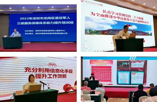 此次培训班牢牢把握学习贯彻习近平新时代中国特色社会主义思想主题教育“学思想、强党性、重实践、建新功”总要求,紧扣《广东省退役军人服务中心(站)高质量发展行动计划2023-2025年》文件精神,参照深圳建设全国退役军人工作先行发展示范区目标定位、重点任务,贯彻全市退役军人服务保障体系高质量发展推进会会议精神,特邀广东东江干部学院专职理论教员、省退役军人服务中心相关业务负责同志等,围绕党的二十大精神、习近平总书记关于退役军人工作重要论述,省级、市级信息化建设和相关业务系统、政策法规进行了系统深入解读。